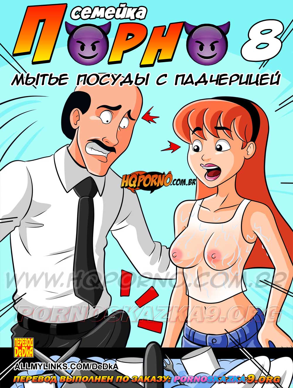 Читать далее 31 Июл 2025 12066 0Порно комикс «Семейка порно 8: Мытье посуды с падчерицей.»
