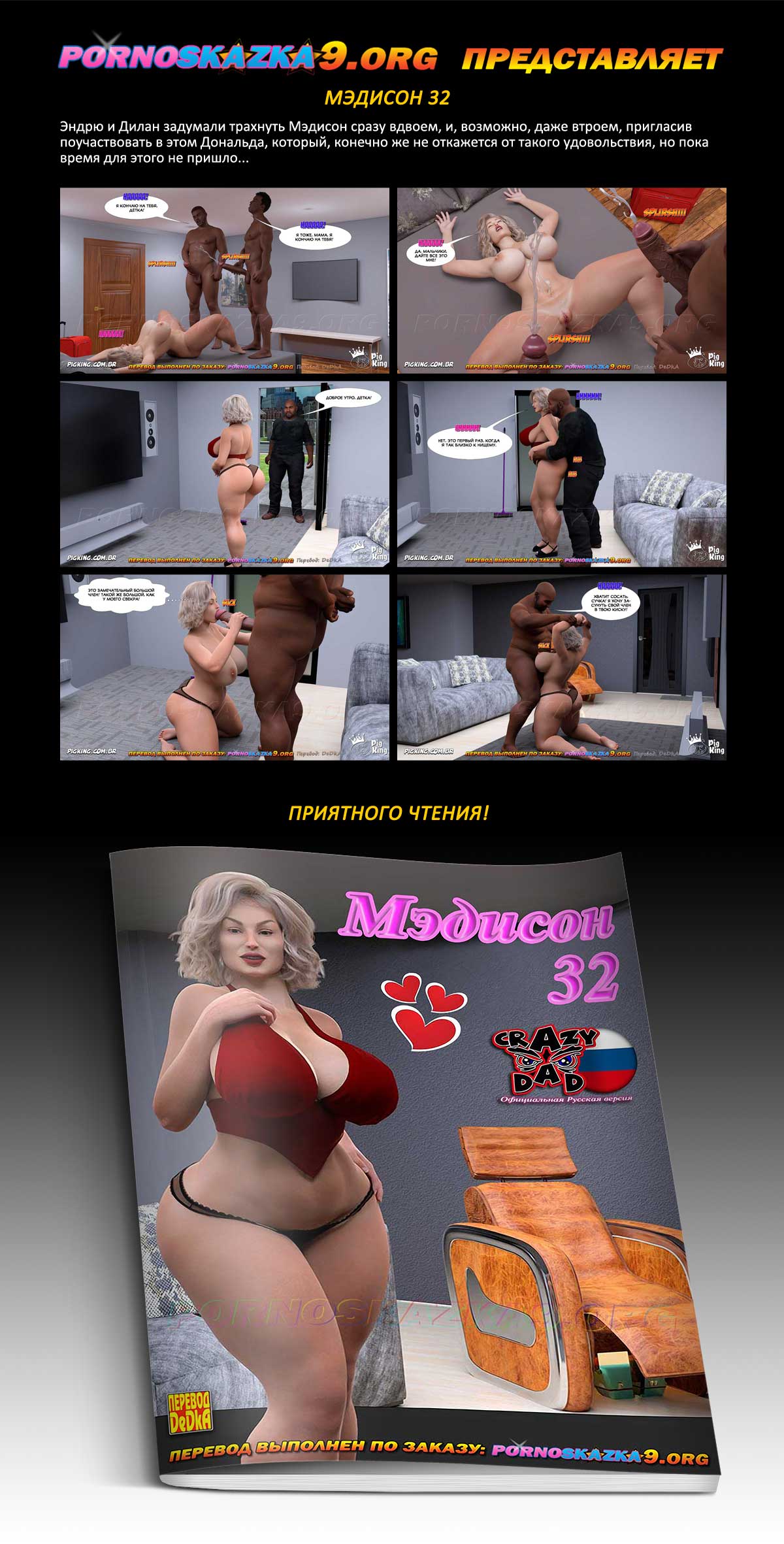 Порно комикс «Мэдисон. Часть 32.» Эндрю и Дилан задумали трахнуть Мэдисон сразу вдвоем, и, возможно, даже втроем, пригласив поучаствовать в этом Дональда, который, конечно же не откажется от такого удовольствия, но пока время для этого не пришло…